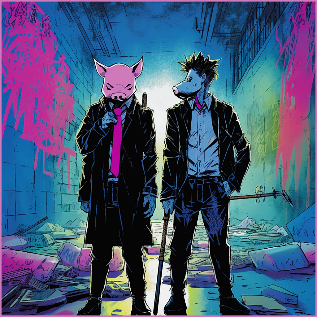 Shortly after the club closes, Irene says goodnight to her work buddies and heads off to Cherubz for some debauchery. A lapse in security offers a ten second window where nobody can see her. During this ten seconds, a couple of metropunks wearing black suits and piggy masks grab hold of Irene and chuck her into the boot of a truck. They speed off and take her to an abandoned warehouse on the outskirts of the Pleasure Strip.