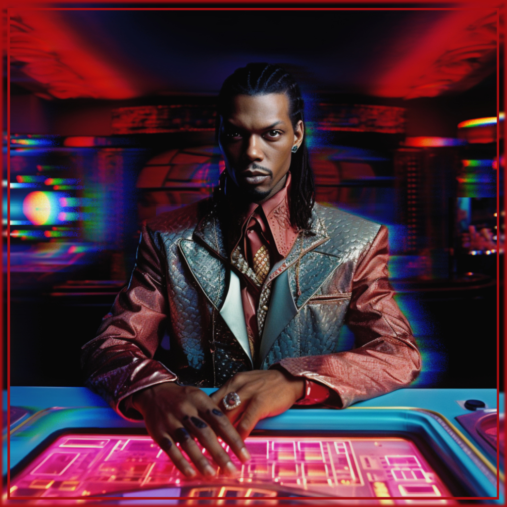 We’re only playing, of course. The Booboo character is probably one of the more authentic cyberpunk heads in the entire story. He seems to tap into that aspect of human nature which cyberpunk authors love to explore: someone who can only survive a day at a time by making sure he is selling something that people really need and people really like. In this instance it’s lots of drugs and so he is much loved.