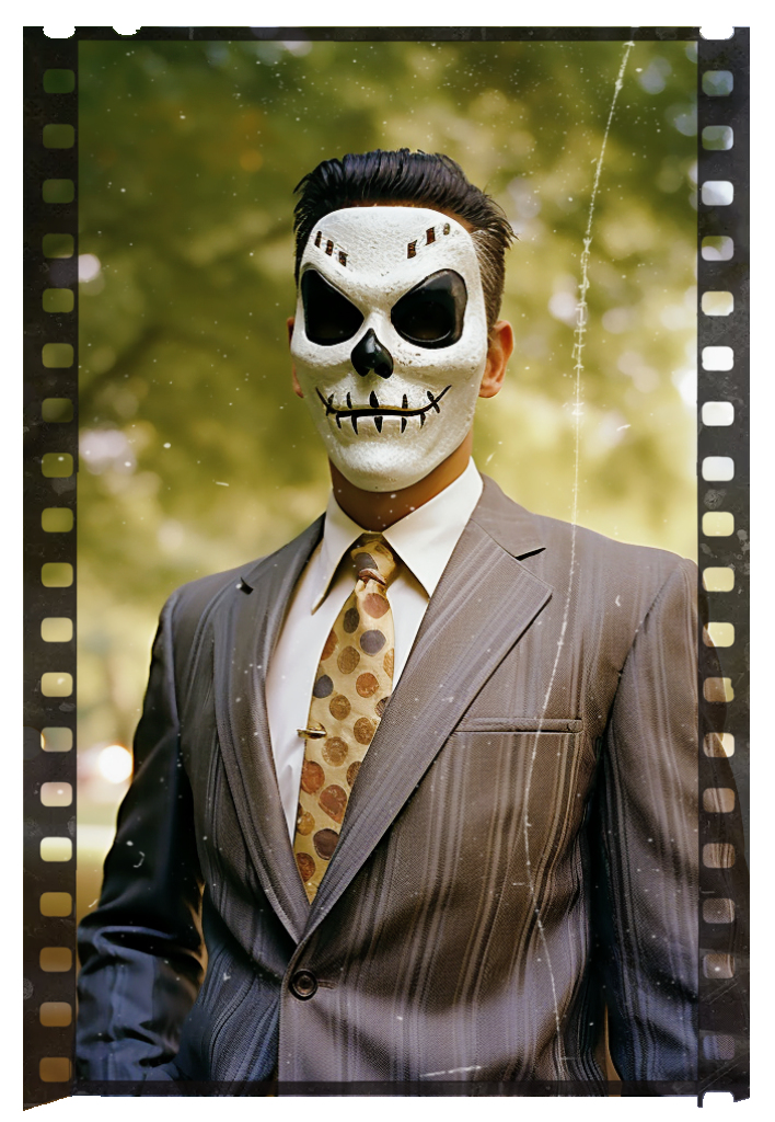 He entered third-person mode and watched himself as he got dressed and walked out of his apartment wearing a stupid mask