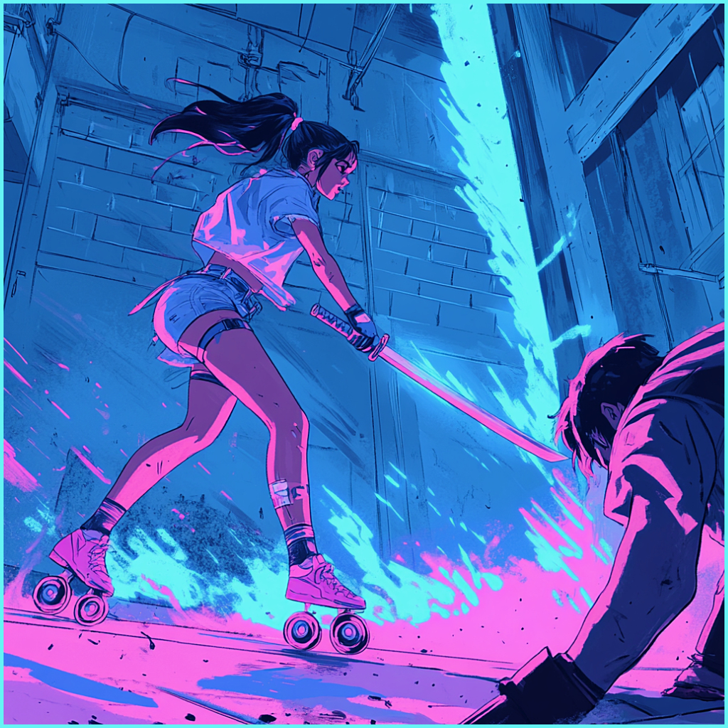 A gang of hot kick ass girls who travel around on roller skates. They wear those tight shorts and T-shirts which opens up the possibility of sexy merch and guaranteed sales.